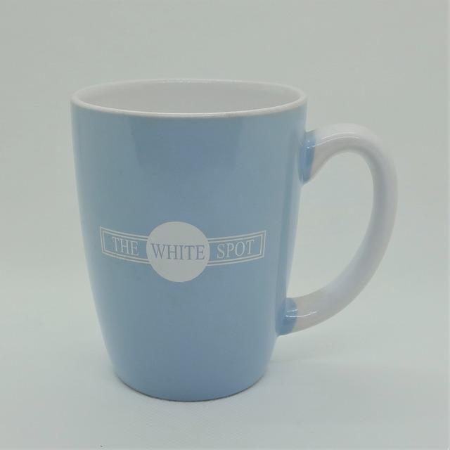 高級紳士用品の代表的なブランドとして知られているダンヒル。 そのパイプの象徴としてステムに刻まれる白い点「ホワイトスポット」 のロゴを入れたマグカップ。 高さ11㎝ 飲み口の直径8㎝ そこの直径6㎝