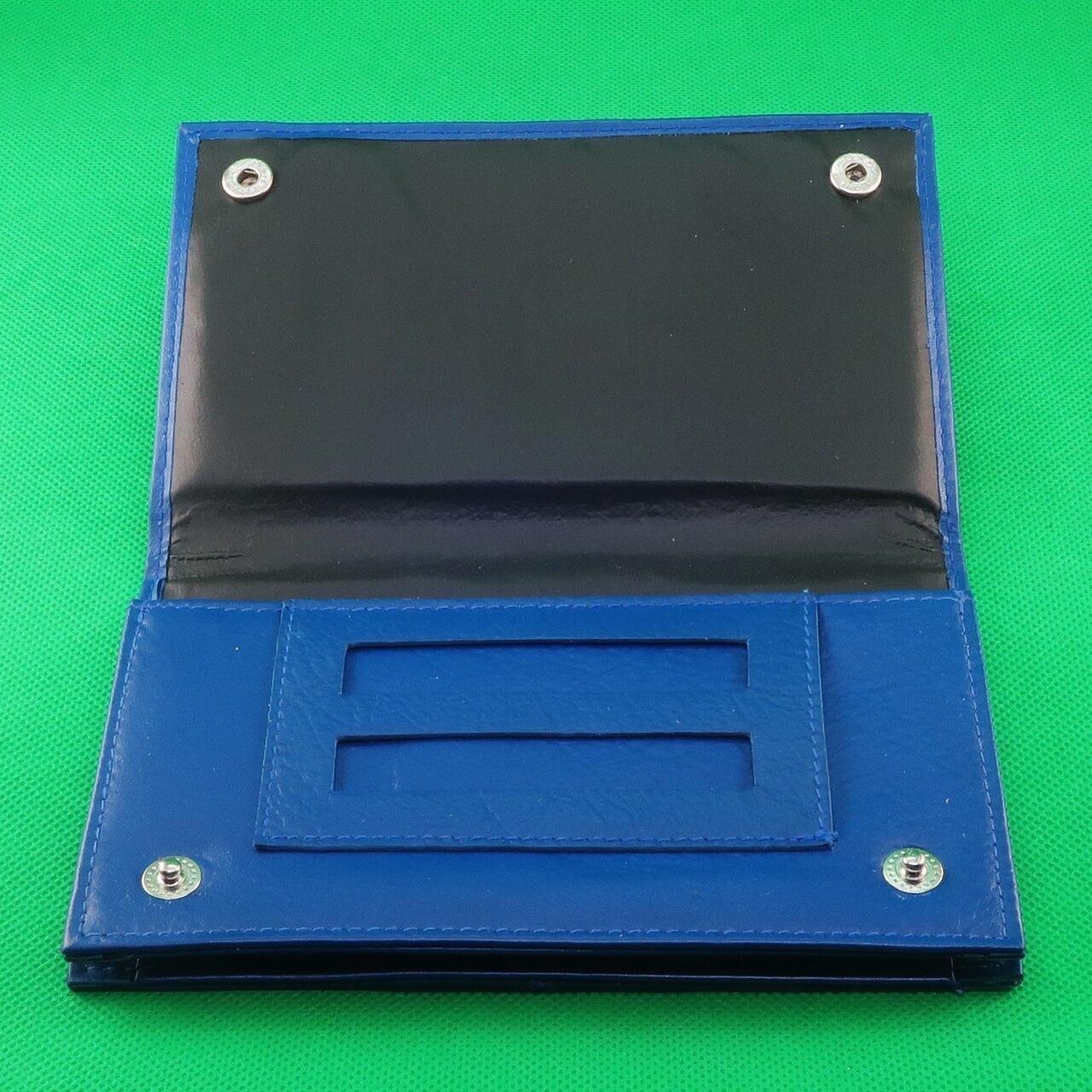 シャコムの手巻き煙草用革製シャグポーチ。使いやすさとデザイン性を兼ね備えた逸品です。内側には100枚入りの巻紙ブックレット用ポケットが付いており、マチ付きのポケットはブラックスパイダーのパッケージがそのまま入るサイズで、背面にはローラーを挟んで収納できるストラップやZIPポケットが付いています。フィルターやその他の小物も収納できるので、便利さも抜群です。本体と同素材のクルミスナップボタン等フランスのパイプメーカーが手がけるだけあり、洗練されたデザインと高い品質が特徴です。