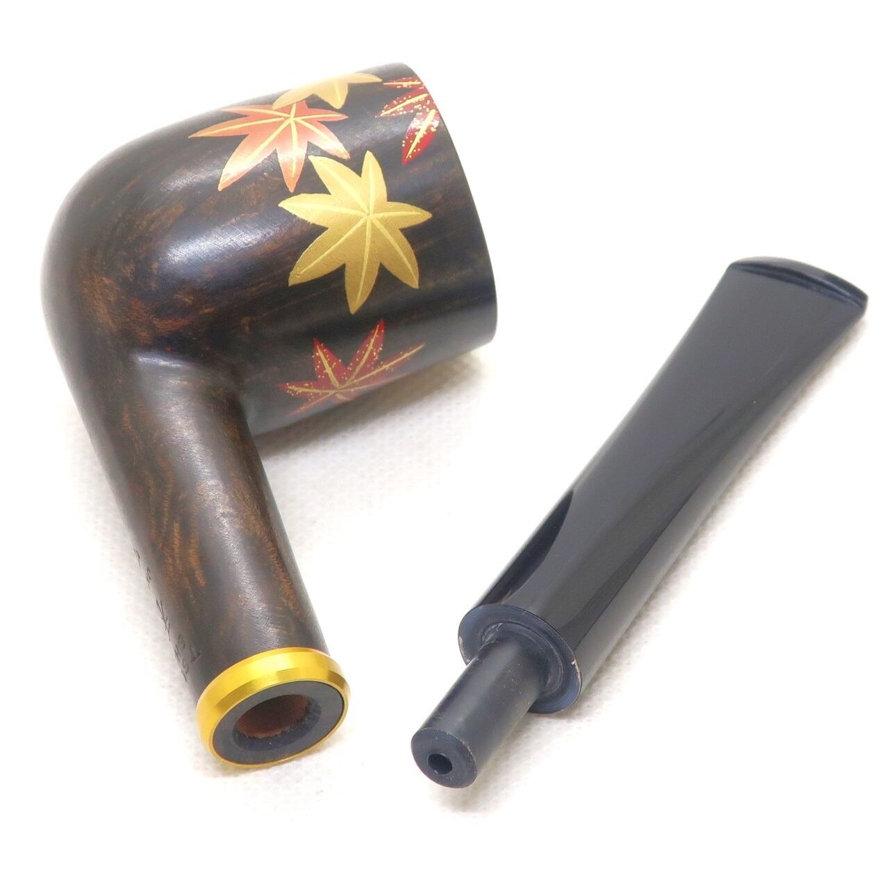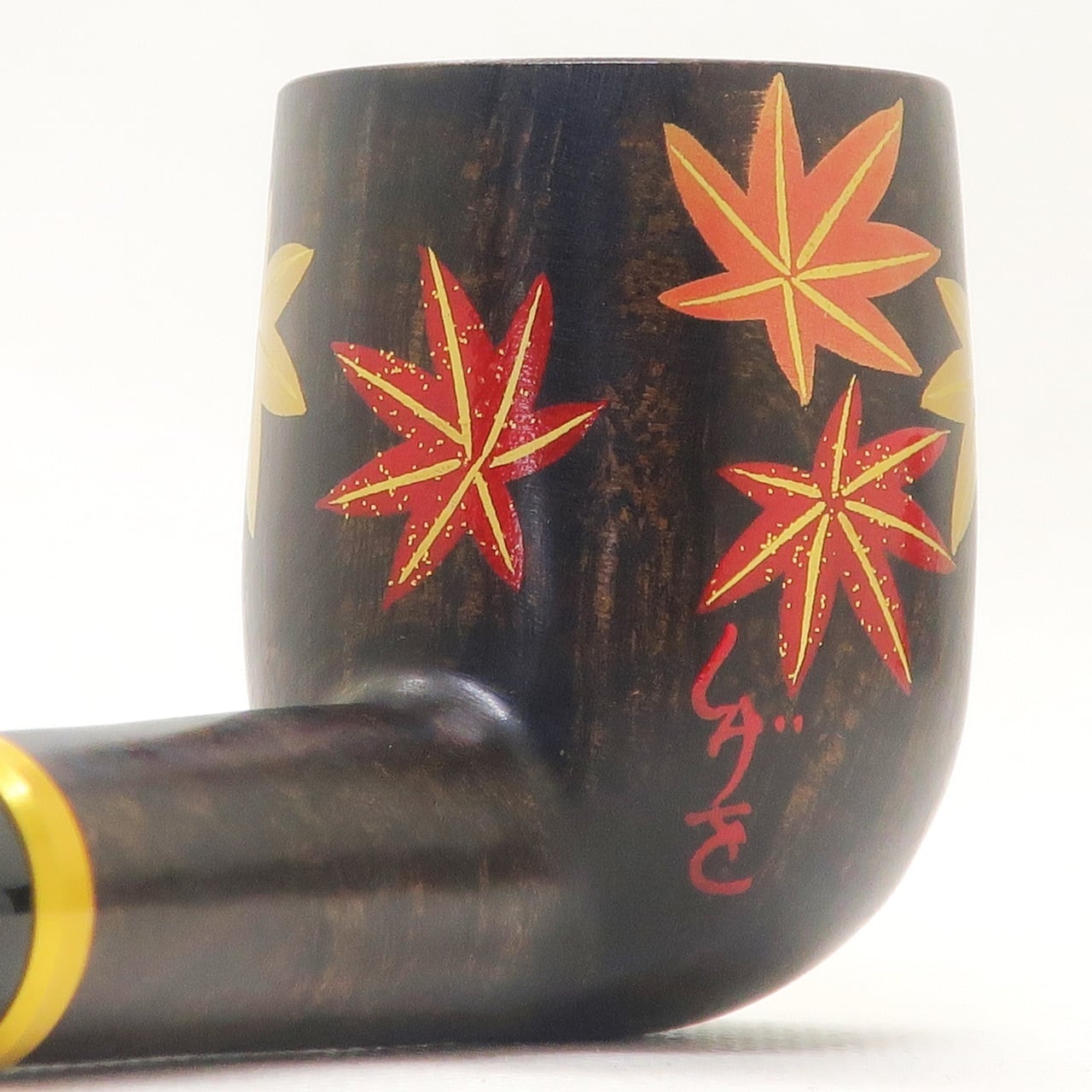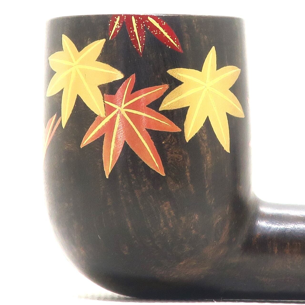 金と朱で描かれた紅葉が暗い拭き漆に映え、控えめな中にも